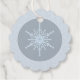Schöne echte Silber-Folie-Gastgeschenk Hochzeit-Markierung mit einem schönen Schneeflockendesign mit schönem gebogenem Text, der auf einem niedlich gepunkteten Fallschnee-Hintergrund personalisiert werden kann. Die Rückseite ist in eleganten Blau- und Grautönen gehalten. Die Hintergrundfarben können nach Bedarf geändert werden.