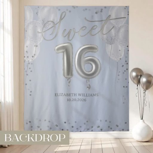 Silver Foil Sweet 16 Birthday Balloons Party Blue Serviette