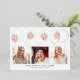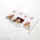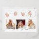 Real silberne Folie GRAD Typografie Foto Abschluss Ankündigung. Es enthält das Wort "GRAD" in einem dekorativen Schriftart in Silberfolie, Sträuchern aus rosa Rosen und drei Fotos. Die Rückseite weist ein Muster weißer Graduierungskappen auf grau auf.