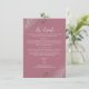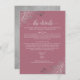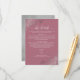 Diese schöne Einschließungskarte dient dazu, Ihren Gästen zusätzliche Informationen über den Empfang, die Unterkünfte, die Reisearrangements, die Registrierung, die Website, die Anfahrtsbeschreibung und alle anderen Einzelheiten zu liefern, die Ihre Gäste benötigen könnten. Die Rose ist schlicht und elegant, rosafarben oder rosa, mit einem zartem Schriftzeichen, glänzend silberfarbenen Imitaten und Wirbel in den Ecken.