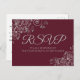 Silver Frills Elegant Burgundy Wedding RSVP Postkarte