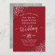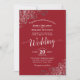 Diese schöne Hochzeitseinladung zeichnet sich durch ein schlichtes und dennoch elegantes Design aus, das auf einem roten Hintergrund eine lakenweiße Schriftzeichen-Kalligraphie und in den Ecken eine fein silbergraue Filigree aus Imitaten aufweist. Die Formulierung ist formell, aber die Gestaltung ist modern und stilvoll.