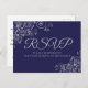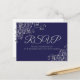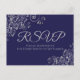 Silver Frills Elegant Navy Blue Wedding RSVP Postkarte