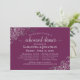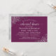 Diese schöne Probe-Dinner Einladung ist einfach und elegant zugleich. Es zeigt grauen Text auf einem magentafarbenen oder cassis lila Hintergrund mit silberfarbenen Imitaten oder filigranen in den Ecken. Es gibt Informationen sowohl über die Hochzeitsfeier als auch das anschließende Abendessen. Ideal, um das Brautparty über alle Vorhochzeiten informiert behalten.