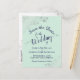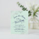 Diese schöne Postkarte ist so konzipiert, dass Sie Ihre Freunde und Familie rechtzeitig über Ihre kommende Hochzeit informieren können. Es zeichnet sich durch ein schlichtes und dennoch elegantes Design aus, mit laky marineblauer Kalligraphie und fein silberfarbenen Imitaten und Wirbel in den Ecken auf einem neo-minzgrünen Hintergrund. Der Rücken hat eine niedliche "Bleistift-uns"-Grafik sowie Platz für eine Website und andere Informationen.