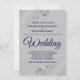 Diese schlichte und elegante Hochzeitseinladung zeigt marineblaue Schriftzeichen auf grauem Hintergrund. Das Design ist schlicht, aber die Ecken sind mit einer verzierten silbernen Imitat-Folie florale Filigree mit Gürteln und Falten versehen. Der Text ist formell und traditionell, aber das schicke Design macht diese Einladung für jede Hochzeit geeignet.