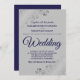 Silver Frills Navy Blue auf Gray Wedding Einladung