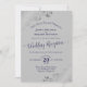 Diese schöne Hochzeitsempfehlung lädt Ihre Freunde und Familie zum Verweilen ein! Das Design ist schlicht und elegant mit extravaganter marineblauer Schriftzeichen-Kalligraphie auf grauem oder grauem Hintergrund und verzierten Silber-Imitat-Folientrillen in den Ecken.