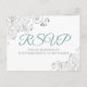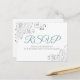 Diese wunderschönen UAWG-Postkarten machen es Ihren Gästen leicht, auf Ihre Hochzeitseinladung mit der Anzahl der Teilnehmer und einer Auswahl an Speisen zu antworten oder ihr Bedauern zu senden. Das Design ist einfach und dennoch elegant mit aquamarinem oder türkisfarbenem und grauem Imitat und einem zartem, silberfarbenen Rahmen mit floralen filigranen .