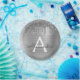 Silver Glitter Brushed Metal Monogram Name Pappteller