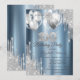 Silver Glitter Drips Balloons Blue Metallic 100th Einladung