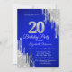 Silver Glitter Drips Royal Blue 20th Birthday Einladung