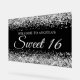 Schaffen Sie sich Ihr eigenes süßes Begrüßungsschild für Ihren Freund aus dem 16. bis 16. Jubiläum. Passen Sie die moderne und elegante Kalligrafie mit einem modernen Schriftart im All-Caps-Stil in Schwarz an, um Ihr eigenes personalisiertes Zeichen zu schaffen. Der funkelnd, silbergraue Glitzer gegen Schwarz wird mit Digitalgrafiken erstellt, die wie ein Foto auf Ihrem Schild drucken.