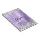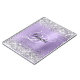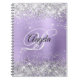 Imitate funkelnd silberner Glitzer und blasses lila gebürstetes Metallfolien Digital Art Image auf einem leeren Notebook. Das extravagante, stilvolle Schwarz-Weiß-Kalligraphie-personalisierte Monogramm in der Mitte kann individuell angepasst werden. Für diesen wunderschönen dekorativen Schriftart-Stil können Sie bei Bedarf Ihren ersten Gang in die Mitte verschieben. Alle metallischen, glänzenden, funkelnd und glänzenden Elemente in diesem modernen Girly-Design sind mit digitalen Grafikeffekten erstellt, die flach wie ein Foto drucken. Ein hübsches, wertvolles Geschenk für Ihre Tochter.