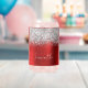 Passen Sie das moderne handgeschriebene Skript an, um Ihre eigene Dose Glas für sie zu kreieren. Fügen Sie ein Monogramm Initial hinzu, um eine erste Kombination aus Vornamen zu erstellen. Girly Imitats silber Glitzer und gebürstete leuchtend rote Metal-Folie digitale Kunst (es druckt wie ein Foto auf Ihrem modernen Geschenk). Passen Sie die Farbe des weißen Schriftartes an, wenn Sie möchten.