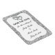 Diese schöne Rettung des Datums Magneten ist eine stilvolle, lang anhaltende Art, Ihren großen Tag zu verkünden. Personalisieren Sie den Magneten, indem Sie den Text in den angegebenen Feldern ändern. Sie können den Stil, die Größe und die Farbe des Schriftartes ändern.