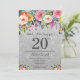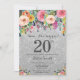 Silver Glitzer Floral Überraschung 20. Geburtstag Einladung