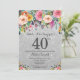 Silver Glitzer Floral Überraschung 40. Geburtstag Einladung