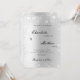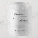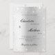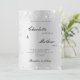 Eine moderne, elegante und minimalistische formelle Hochzeitseinladung. Imitat silber aussehender Hintergrund mit Imitat Glitzer. Personalisieren Sie Ihre Namen und Details und fügen Sie diese hinzu. Schwarze Buchstaben. Die Vornamen werden mit einem modernen, handgeschriebenen Stilskript geschrieben.