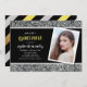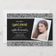 Silver Glitzer Foto Quinceañera Einladung zeigt die Worte "Quinceañera" in einem lustigen Sans Serif Schriftart in Imitats Gold-Folie mit einem silbernen Glitzer oben und unten und einem schwarzen Mitte Hintergrund. Die Einladung hat ein graues, schwarzes und Imitat goldenes Streifen Muster hinten Seite. Personalisieren Sie es, indem Sie den Platzhalter-Text ersetzen und das Foto für die Auswahl/den Platzhalter durch Ihr eigenes Foto ersetzen. Für weitere Optionen, wie zum Beispiel den Schriftart zu ändern und ihn zu vergrößern oder zu verändern, klicken Sie auf den Button "Anpassen". *Bitte beachten Sie, dass das Zazzle-Wasserzeichen, das in der Zoomvorschau angezeigt wird, NICHT auf dem gedruckten Endprodukt erscheint. © Rosewood and Citrus