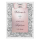 Silver Glitzer Frame Pink Bow Taufe Willkommen Poster
