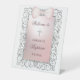 Silver Glitzer Frame Pink Bow Taufe Willkommen Sockelschild