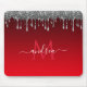 Silver Glitzer Glam Red Gradient Monogram & Name Mousepad