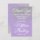 Glamouröse, schicke und elegante Imitate druckten funkelnd silbernen Glitzer auf einem lila lavender Hintergrund Dankeschön Karten. Dieses klassische und elegante Design eignet sich perfekt für stilvolle und trendige Events, wie Hochzeiten und alltägliche Anlässe. Das gesamte Foto ist gedruckt.