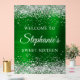 Erstellen Sie Ihre eigene 16. Geburtstagsparty Begrüßung 18x24 vertikales Acrylzeichen für Ihre Tochter. Ersetzen Sie das Beispielbild durch Ihr eigenes Foto. Passen Sie die moderne und elegante Kalligrafie mit einem modernen Schriftart im All-Caps-Stil an, um Ihr eigenes personalisiertes Zeichen zu schaffen. Im Hintergrund befindet sich ein Imitat funkelnd silberner Glitzer mit einer smaragdgrün gebürstetem Metall-Ober-Folie für digitale Kunst. Der Glitzer, funkelnd und metallisch glänzt mit digitalen Grafiken, die wie ein Foto auf Ihrem Schild drucken.