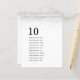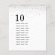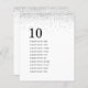 4,5 x 5,6" Halbschall, ähnlich dick wie eine Postkarte, mit 1 pro Blatt. Silver Glitzer Guest Names Tischnummer. Einfaches zeitgenössisches Design mit einer größeren Tischnummer in stilvollen Kleinbuchstaben und Ihren Gastnamen für den Tisch unter und viel Weiß mit einem Rand von silbernen Imitaten Glitzer an der Spitze. Personalisieren Sie den Text einfach auf Ihre eigenen Daten. Das gleiche Design ist auf der Rückseite