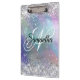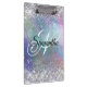 Ein extravagantes personalisiertes Monogramm in Schwarz/Weiß gegen ein Imitat glänzende irisierende Farben gebürstete Metallfoliengrafik und Imitate funkelnd silberne Glitzer Kanten. Erstellen Sie Ihre eigene hübsche Zwischenablage für Ihren Lieblingslehrer. Das Monogramm-Design ist sowohl vorne als auch hinten... aber man könnte eines davon löschen, wenn man es vorziehen würde. Passen Sie den gürtlichen, kühnen Schriftart Stil mit verschiedenen Farben an, um die farbenfrohe digitale Hintergrundkunst oder ihre Lieblingsfarbe zu passen. Wählen Sie beide Textelemente aus, um die Größe ihres Namens zu erhöhen oder zu verringern oder als Gruppe zu starten. Die Systemrichtlinien-Option kann hilfreich sein, um einen Schriftart-Stil mit vielen schönen Wirbel zu zentrieren oder zu verschieben und blühen. Wir haben extravagante Monogramme in verschiedenen Farbkombinationen und mit Grafik-Designs. Die farbenfrohe, mehrfarbige Imitat-Folie wird mit einer Digitalgrafik erstellt und flach wie ein Foto gedruckt. Der helle Regenbogen der holografischen Farben in diesem mädchenhaften Design sind periwinkle lila, aqua, blau, aquamarin, rosa, korallen und gelb.