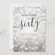 Elegante Glam Silver Glitzer Lights 60. Geburtstagsskripte mit Party- und Menütext, Glitzer-Leuchten und modernem Typografie-Script.