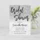 Silbergrauer Glitzer und silberweiße Marmorglasur Farbgebälk für Ihr Brautparty. Der handgeschriebene Schriftart "Brautparty" ist eine schöne zeitgenössische Kalligraphie in Schwarz. Sie können den gesamten Text in diesem Design anpassen, einschließlich des QR-Codedesigns auf der Rückseite für eine Online-Registrierung. Die Glitzer-Grafik ist eine digitale Kunst, die wie ein Foto auf Ihrem modernen Einladungen druckt.