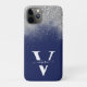 Silver Glitzer Navy Blue Monogram EleganCustom Case-Mate iPhone Hülle