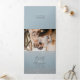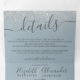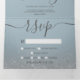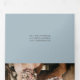 Silver Glitzer ombre dusty blue script schick Hochzeit dreifach Einladung mit den Details, Haupteinladung und die uAwg für Ihren Gast zu schneiden und zurückzukehren. Fügen Sie Ihr Foto hinten hinzu. Mit einem schicken grauen silbernen Glitzer-Ober auf einem blauen, schlichten Hintergrund mit einem eleganten und modernen Script-Kalligraphie-Schriftart.