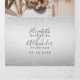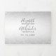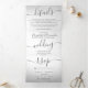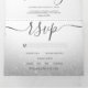 Silver Glitzer ombre weißen Drehbuch chic Hochzeit dreifach Einladung mit den Details, Haupteinladung und die uAwg für Ihren Gast zu schneiden und zurückzukehren. Fügen Sie Ihr Foto hinten hinzu. Mit einem schick-grauen silbernen Glitzer-Ober auf weißem Hintergrund mit einem eleganten und modernen Script-Kalligraphie-Schriftart.
