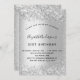 Eine Einladung für eine elegante 21. Geburtstagsfeier (oder jedes Alter). Ein Imitat silber metallisch aussehender Hintergrund. Dekoriert mit Imitat Glitzer. Personalisieren und fügen Sie einen Namen und Party-Details hinzu. Der Name wird mit einem handgeschriebenen Stilskript geschrieben