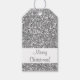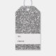 Stilvoll digital kreierte Bilder, die das silberne Glitzer-Muster nachahmen. Auf der Vorderseite steht "Frohe Weihnachten!" und auf der anderen Seite gibt es einen personalisierbaren Textbereich für die Namen des Geschenkempfängers und des Geschenkleifers. Hinweis: Dieses Produkt besteht nicht aus echtem Glitzer. Es zeigt einfach ein gedrucktes Bild, das wie silberner Glitzer aussieht.