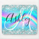 Silver Glitzer Rainbow Wave Aqua Ombre Monogram Mousepad