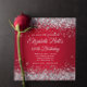 Silver Glitzer Red Ombre Extravagant Monogram Birt Einladung