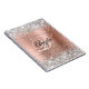 Imitate funkelnd silberne Glitzer und Rose Gold gebürstete Metallfolie Digital Art Image auf einem leeren Notebook. Das extravagante, stilvolle Schwarz-Weiß-Kalligraphie-personalisierte Monogramm in der Mitte kann individuell angepasst werden. Für diesen wunderschönen dekorativen Schriftart-Stil können Sie bei Bedarf Ihren ersten Gang in die Mitte verschieben. Alle metallischen, glänzenden, funkelnd und glänzenden Elemente in diesem modernen Girly-Design sind mit digitalen Grafikeffekten erstellt, die flach wie ein Foto drucken. Ein hübsches, wertvolles Geschenk für Ihre Tochter.