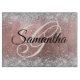 Imitate glänzend silbergrauen Farbstil Glitzer mit Glitzern gegen ein Imitat rot und Rose gold ombre brushed Metal Folie Grafik Bild. Das extravagante Schwarz-Weiß-Kalligraphie-Monogramm in der Mitte kann individuell angepasst werden. Alle funkelnd und glänzenden Elemente in diesem modernen mädchenhaften Design sind digitale Grafiken. Eine wertvolle personalisierte große Rechteck-Schneideplatte, die zu ihrer Wohngestaltung passt. Die Hauptfarben dieses mädchenhaften Designs sind rot, rosa, goldfarben, silber, grau, schwarz und weiß.