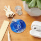 Eleganter silberner Glitzer mit Glitzern gegen ein Imitat Kobalt oder königsblau gebürstete Metallfolienbild. Das extravagante extravagante Kalligraphie-Monogramm in der Mitte kann individuell angepasst werden. Zum Beispiel können Sie einen Namen in diesem Schriftart oder vielleicht Great Vibes hinzufügen. Alle funkelnd und glänzenden Elemente in diesem modernen mädchenhaften Design sind digitale Grafiken. Mit Monogramm wertvolle Kreise prägen Schlüsselketten-Gastgeschenke für ihre besondere Geburtstagsfeier.