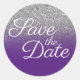 Silver Glitzer Royal Lila Ombre Save the Date Runder Aufkleber