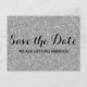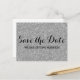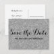 Chic und eleganter Glitzer Save the Date Postcard mit einem silbernen Glitzer sehen digitale Kunstgeschichte aus. Einfach an Ihre Hochzeitsdetails anpassen. Klicken Sie für weitere Anpassungsoptionen auf die Schaltfläche Anpassen. //NICHT WIRKLICHER GLITZER - DIGITAL ART DRUCTED FLAT BILD//