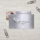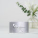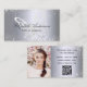 Eine elegante und glamouröse Visitenkarte auf einem silbermetallicfarbenen Imitat mit Glitzer-Staub aus Imitat und Schmetterling. Elegantes, schwarz handgeschriebenes Stilskript. Personalisieren Sie Ihr Profil Foto, Name, Titel, Telefonnummer, E-Mail und Website-Adresse. Fügen Sie Ihren eigenen qr Code zu Ihrer Website oder sozialen Medien hinzu.