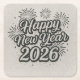 Silver Glitzer Script & Black Happy New Year 2026 Rechteckiger Pappuntersetzer
