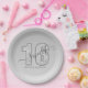 Feiern Sie einen besonderen Meilenstein mit diesem eleganten silbernen Glitzer-Drehbuch Sweet 16 Geburtstagspapier-Teller. Diese Teller mit einem stilvollen Design mit einer glänzenden Silbernummer "16" und einem anpassbaren Scriptnamen fügen jedem 16 . Geburtstag Party eine Touch Glamour hinzu. Diese personalisierten Teller sind sowohl praktisch als auch dekorativ und eignen sich hervorragend für die Zubereitung von Kuchen, Snacks und Party-Leckereien.