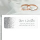 Das elegante, moderne Ehering-Adressetikett besticht durch ein silbernes Imitat-Glitzer-Design. Die links Kulisse dieses eleganten, modernen Ehering-Adressetiketts. Der anpassbare Text kombiniert graue Handschrift und serifenlose Schriftart auf weißem Hintergrund.