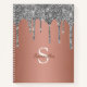 Silver Glitzer Sparkle Tropfen Rose Gold Monogramm Notizbuch